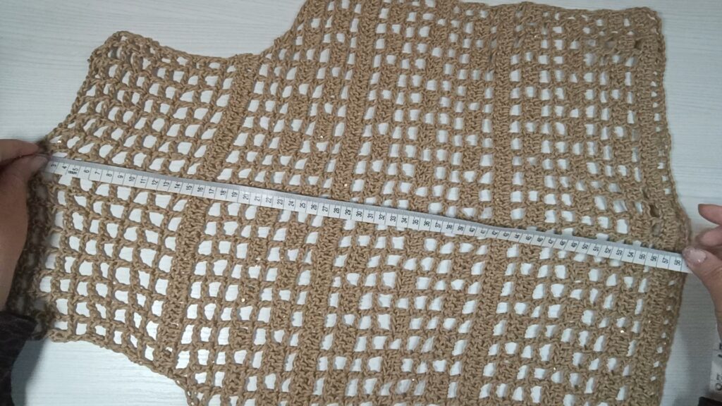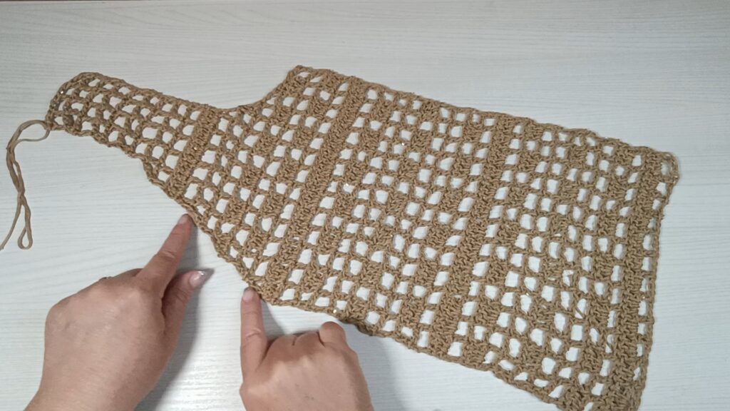 Posso modificarne la lunghezza? Assolutamente sì. Il gilet è modulare: puoi allungarlo o accorciarlo semplicemente aggiungendo o togliendo righe prima di iniziare gli scalfi.