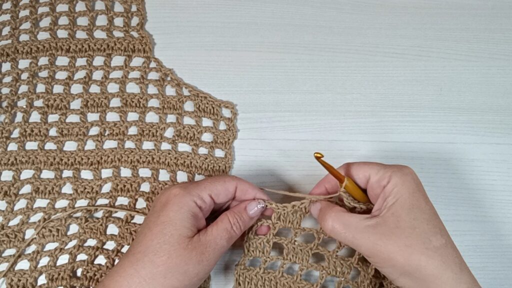 Nel tutorial ho scelto di mostrare con chiarezza come lavorare le diminuzioni graduali e la modellatura dello scalfo utilizzando maglie bassissime, maglie basse e mezze maglie alte, per ottenere una forma morbida e ben rifinita. È importante mantenere una buona simmetria tra il pannello davanti e quello dietro, e ricordarsi che ogni riga lavorata rappresenta una piccola curva della nostra sagoma finale.