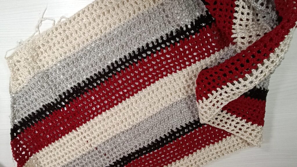 Inserendo i fili, lo scialle perde circa 3 cm in altezza. Se non si tiene conto di questo dettaglio: